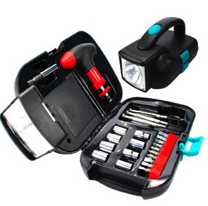 Kit ferramenta com Lanterna para brinde. Contendo um kit de chaves de boca, chaves Philips e...